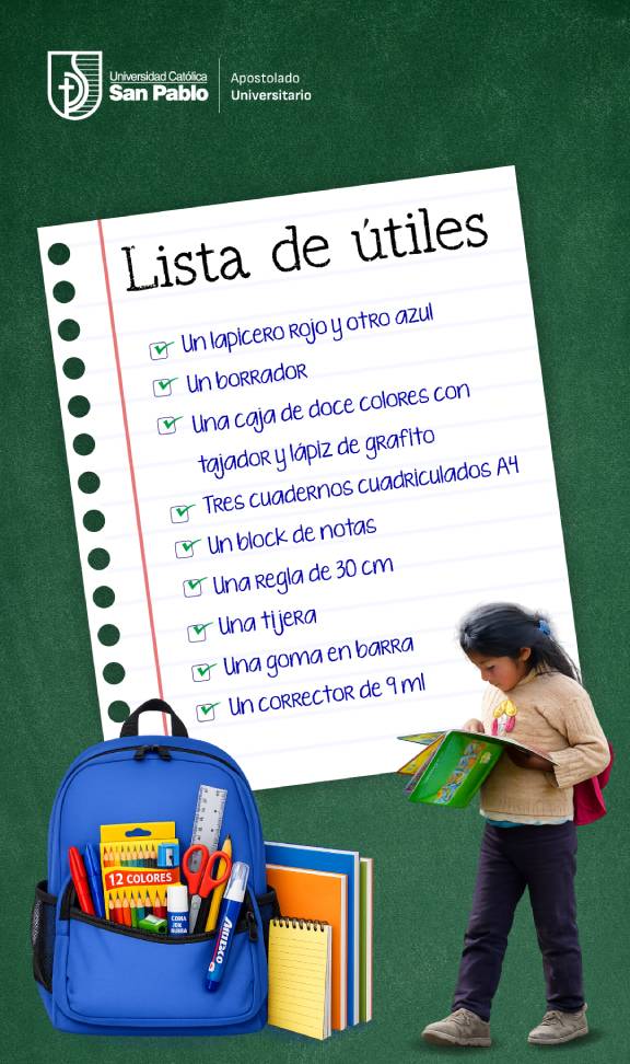 Te invitamos a revisar en casa los útiles escolares en buen estado que ya no utilizas y donarlos a un niño que los necesita y tiene muchos deseos de aprender.